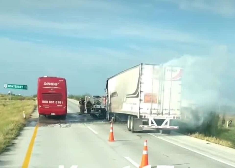En el momento en que circulaba por la Autopista a Laredo, un tráiler comenzó a incendiarse de la cabina, esta mañana a la altura del municipio de Anáhuac.