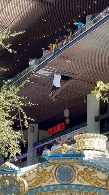 Un cliente del centro Comercial Paseo la Fe ubicado en el municipio de San Nicolás, sufrió diversas lesiones al caer desde el tercer piso, donde se ubican locales de comida.