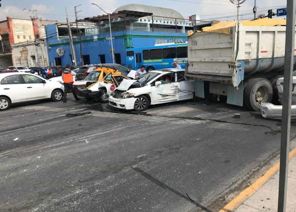 Se queda sin frenos e impacta a 11 autos, hay 7 heridos