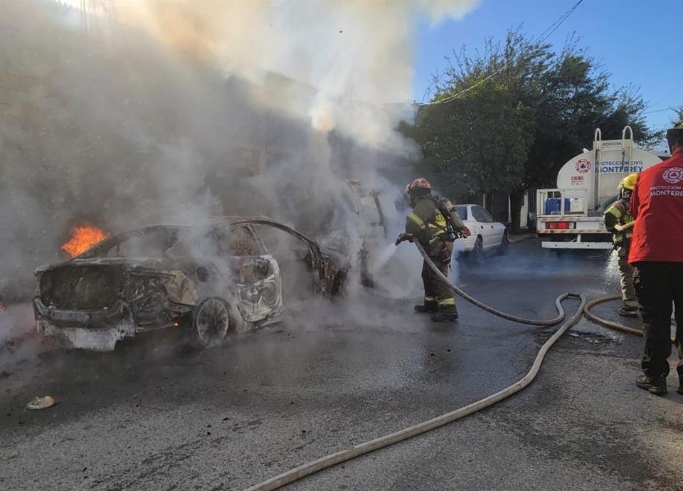 Dos vehículos estacionados y al parecer en situación de abandono, se incendiaron ayer en calles de la Colonia Martínez, en Monterrey.