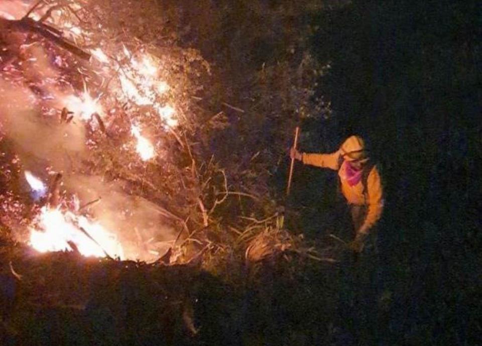 La Brigada Fénix de Protección Civil Nuevo León, se mantiene en labores coordinadas para el combate de incendio forestal en La Hondable, en la Sierra de Santiago.