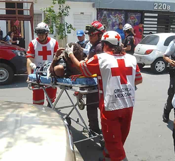 En una ambulancia de la Cruz Roja Mexicana, el herido es trasladado al Hospital San Vicente.
