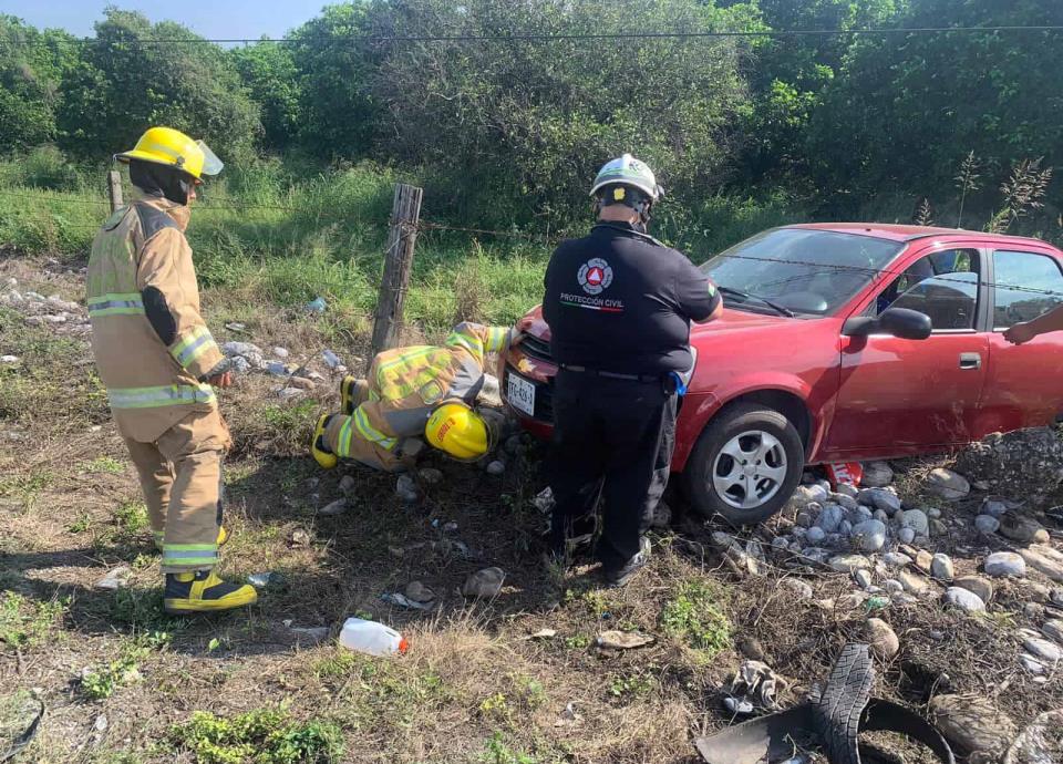 Aunque, el automóvil sedán no se volcó, éste sí golpeó su suspensión contra las rocas y troncos que había en el acotamiento.