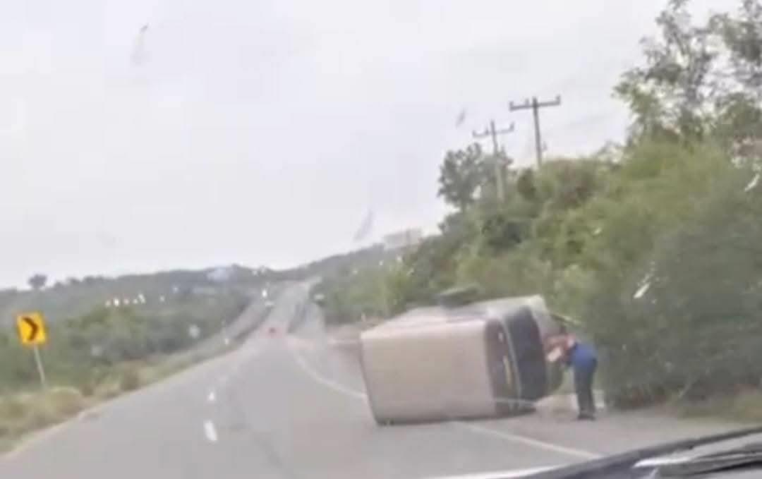 La agrupación musical Líricos Jr. sufrió un accidente vial en la Carretera Nacional, luego de que la unidad en que viajaban se salió del camino y su remolque terminó volcado, ayer en el municipio de Montemorelos.