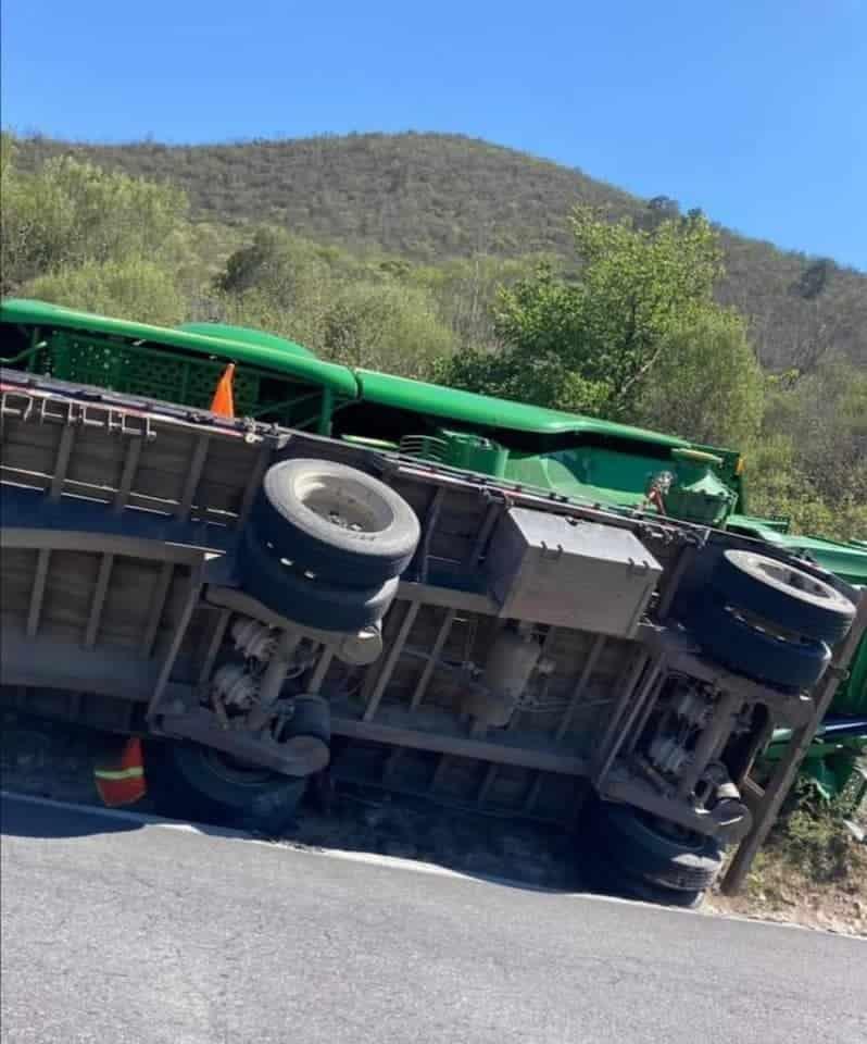 Sin embargo, el pesado vehículo quedó atravesado quedando ambos sentidos de la Carretera Iturbide-Galeana, bloqueados.