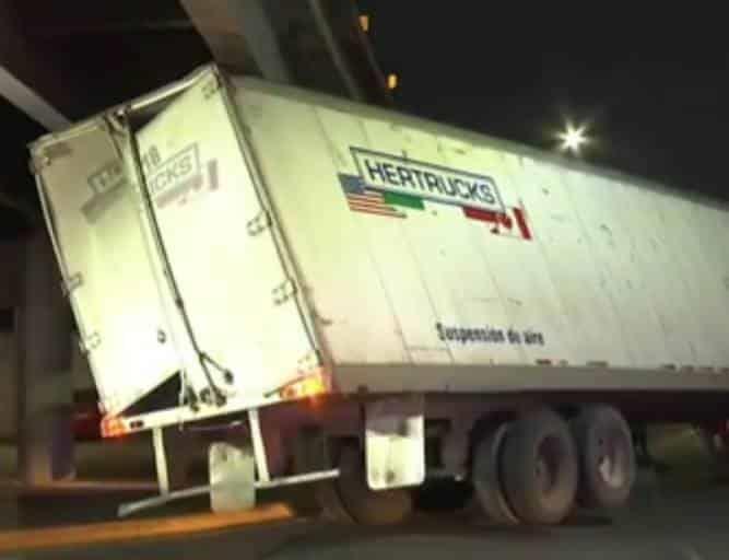 El tráiler atorado es un International modelo 2012, con placas de circulación 452AG5, color blanco y de razón social Hertruk's, el cual conducía Jesús Enrique Carranza Martínez.