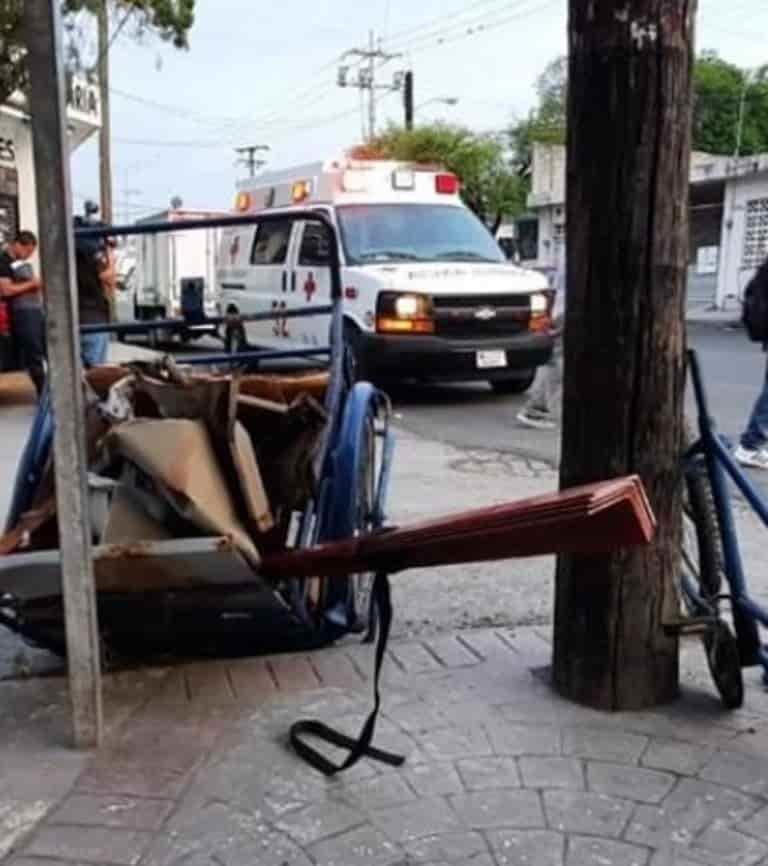 Monterrey N.L.- Un hombre que se gana la vida recolectando desechos industriales en la vía pública, terminó con lesiones de consideración, al ser impactado su triciclo por un automóvil en la zona sur de la ciudad.