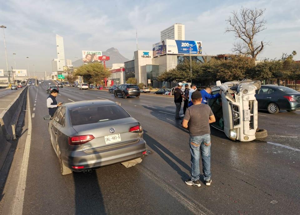Caos vial y al menos dos heridos dejó un choque volcadura entre dos vehículos, esta mañana en la Avenida Constitución antes de su cruce con Venustiano Carranza.