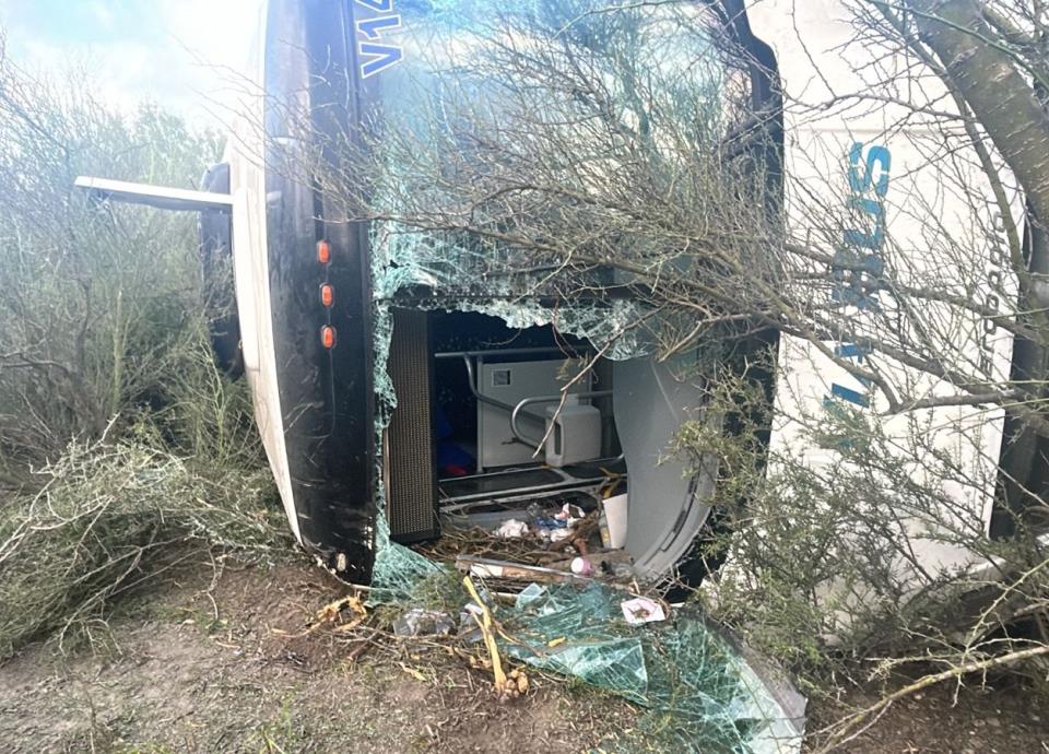 MONTERREY.- Un saldo de al menos 10 lesionados dejó la volcadura de un transporte de personal, esta mañana en la Carretera a Colombia, municipio de Salinas Victoria.