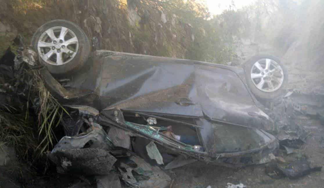 Al menos dos personas fallecidas dejó esta mañana la volcadura de un vehículo en un canalón junta al Libramiento Noreste, a unos metros de Río Pesquería, municipio de García.