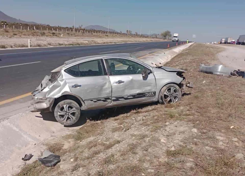 El automóvil dio varias volteretas, hasta terminar en su posición normal, afuera de la carpeta asfáltica.