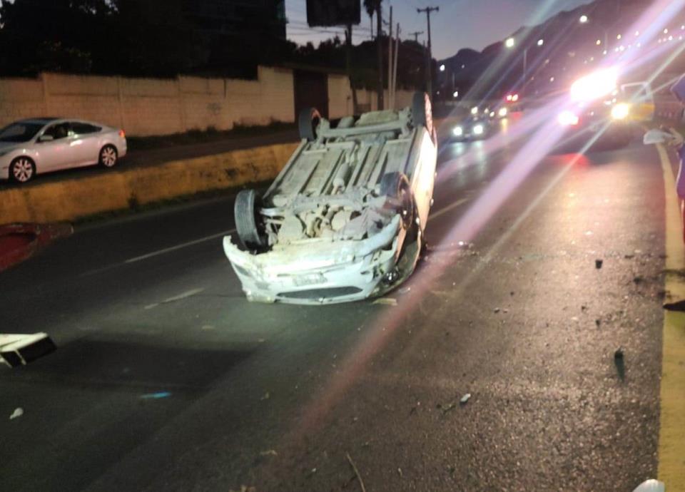 El vehículo, un Chevrolet Aveo SES 942A, que conducía Osmar Enrique Sandoval Rubí, quedó volcado entre el carril derecho y el central de la arteria, al salir de una curva.