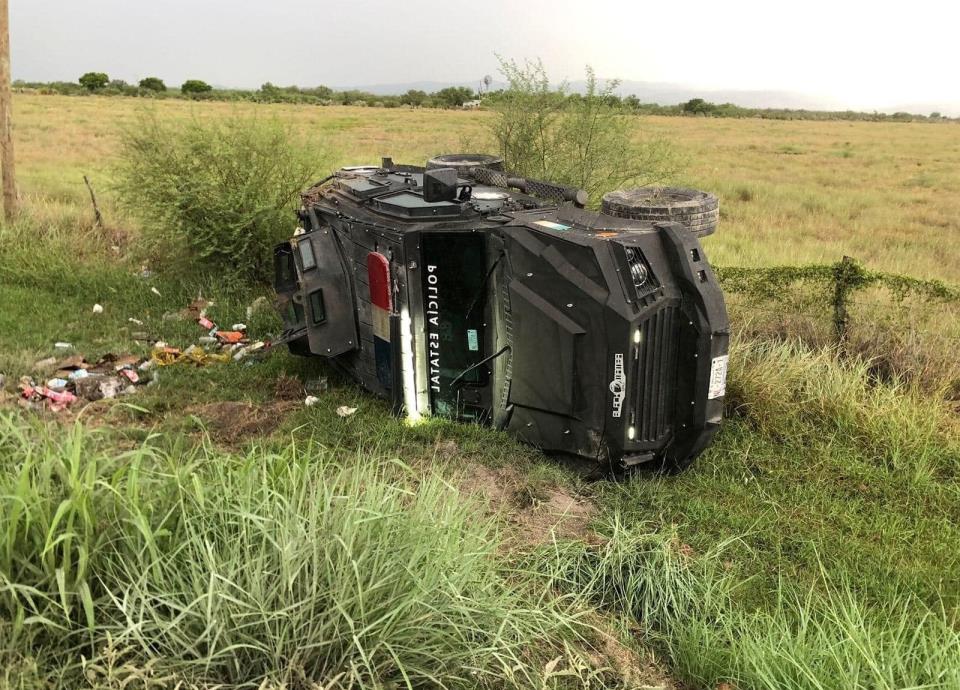 Una unidad Black Mamba de Fuerza Civil, valuada en siete millones de pesos, terminó con serios daños materiales, al volcarse en el municipio de Cerralvo, Nuevo León.