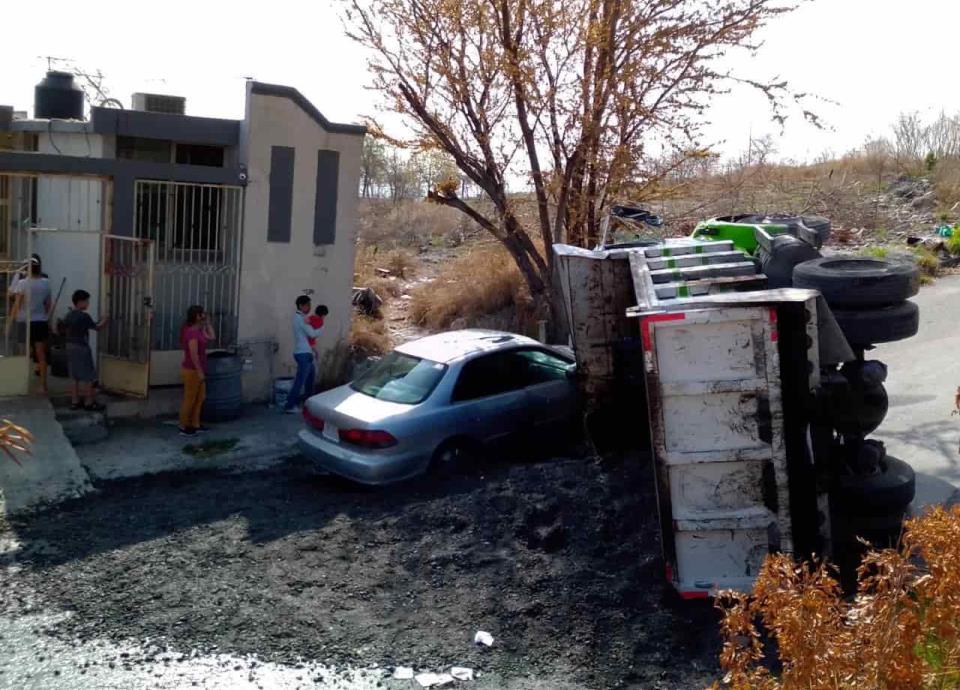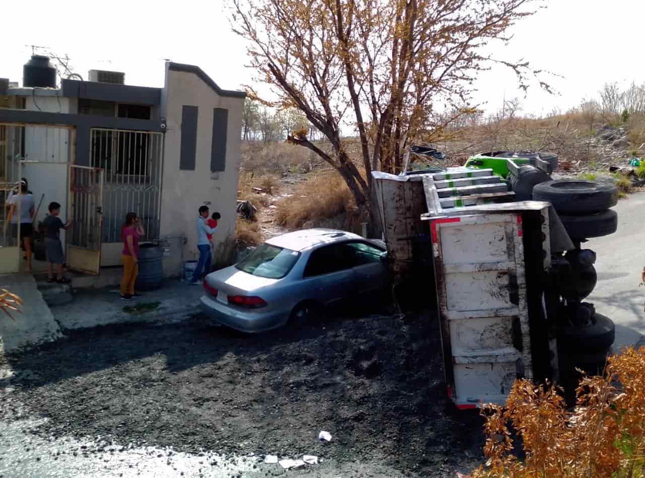 Monterrey N.L.- Cuatro empleados de Servicios Público de Escobedo, terminaron con diversas lesiones, al volcarse un camión de siete toneladas, en calles de la colonia Girasoles, cuarto sector.
