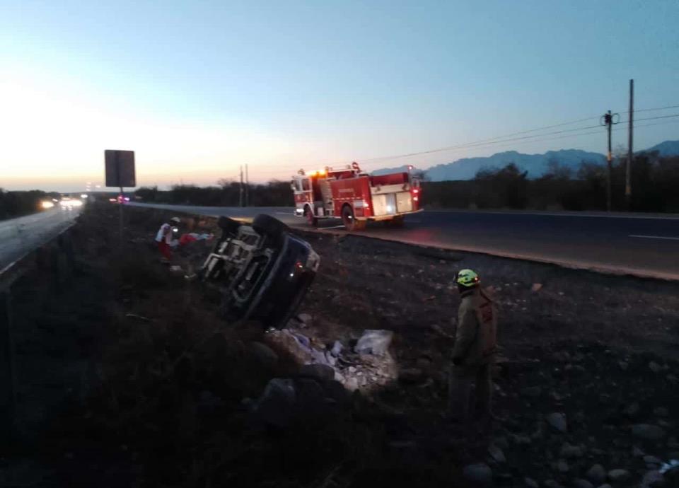 Una intensa movilización de los puestos de socorro se registró en el municipio de Montemorelos, al reportarse la volcadura de una camioneta en la Carretera Nacional.