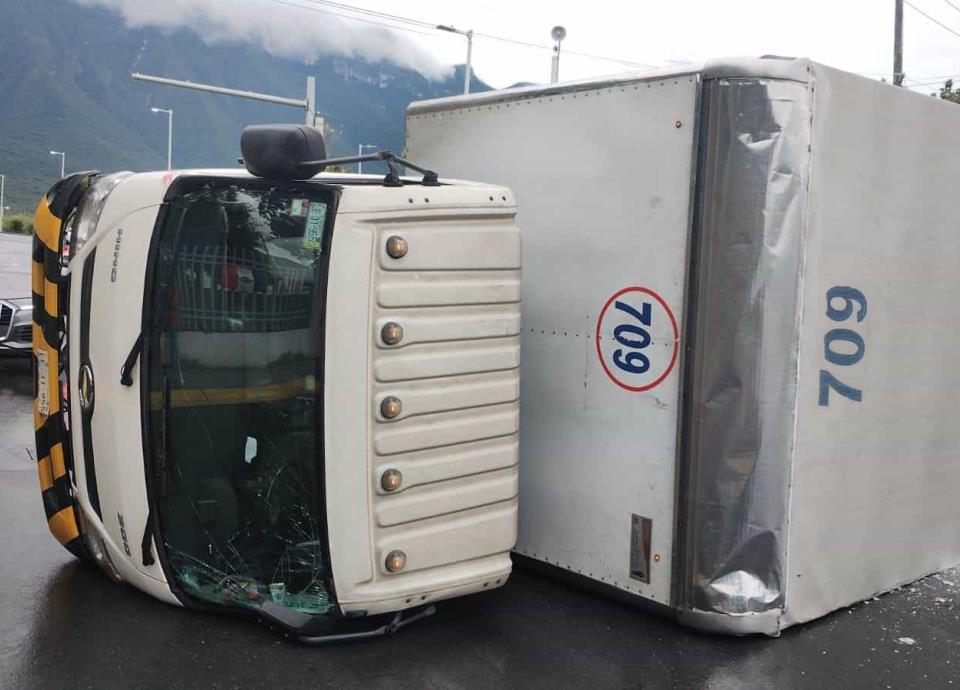 El conductor de la unidad volcada, perteneciente a una Farmacia, resultó con heridas leves, por lo que fue atendido en el lugar y se negó a ser llevado a un hospital.