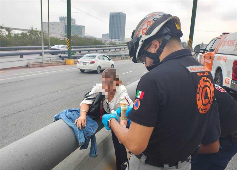 Los elementos de Protección Civil Nuevo León y Monterrey, atendieron el reporte de un accidente vial en el que un vehículo particular se impacta contra la división del puente frente al CONVEX.