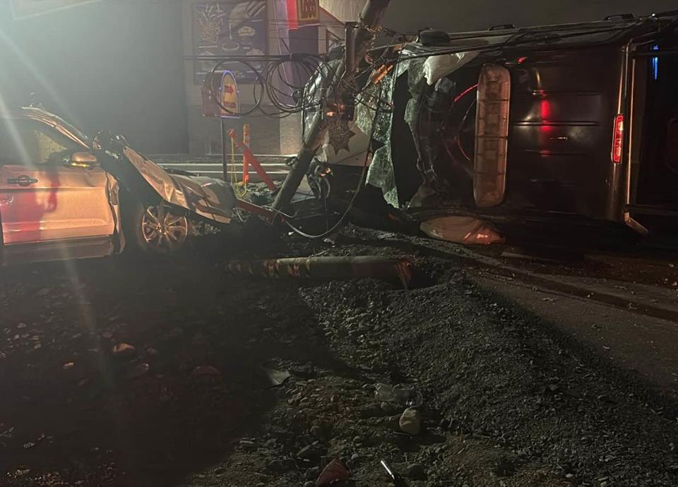 Tras el impacto, la patrulla terminó volcada y se proyectó contra un poste de alumbrado público.