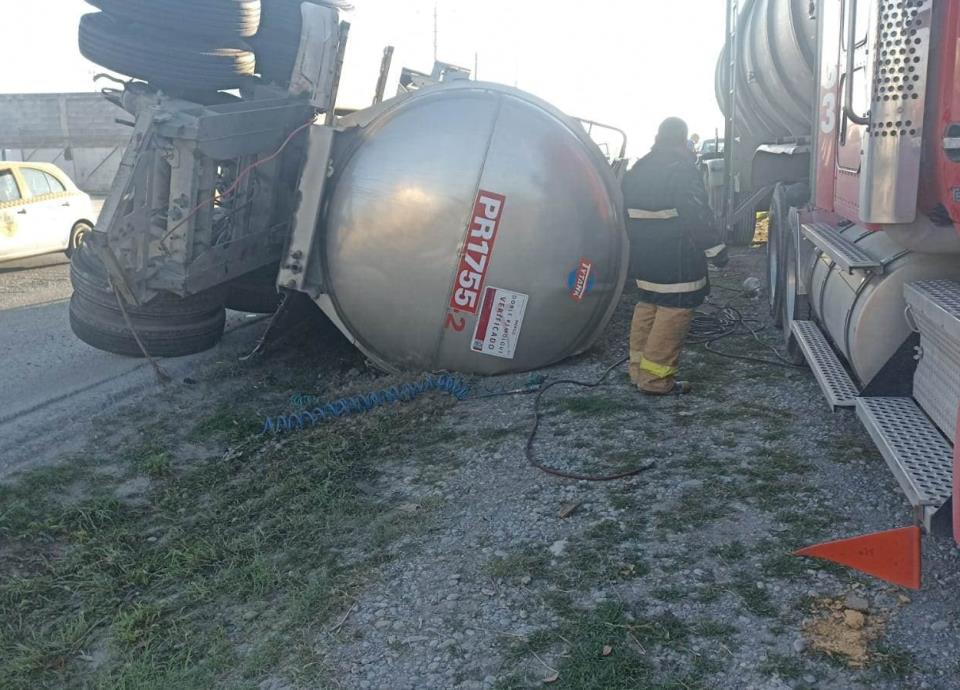 La volcadura de una pipa cargada con 60 mil litros de diésel, movilizó esta mañana a elementos de Protección Civil del Estado en la Autopsita a Reynosa, municipio de Cadereyta Jiménez.
