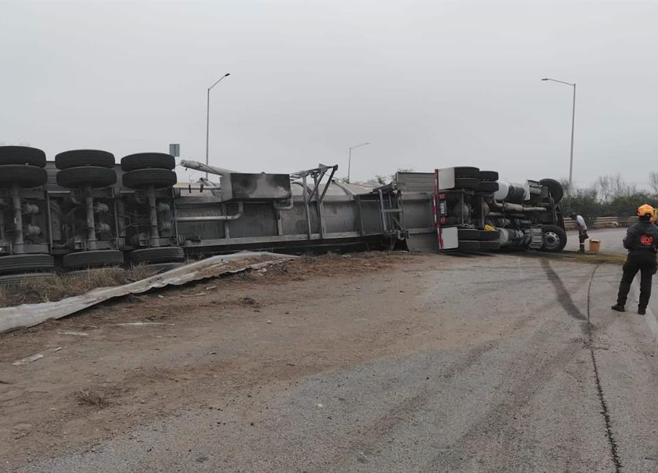 La volcadura de una pipa en el Anillo Periférico cerca de su cruce con la Carretera a Laredo.