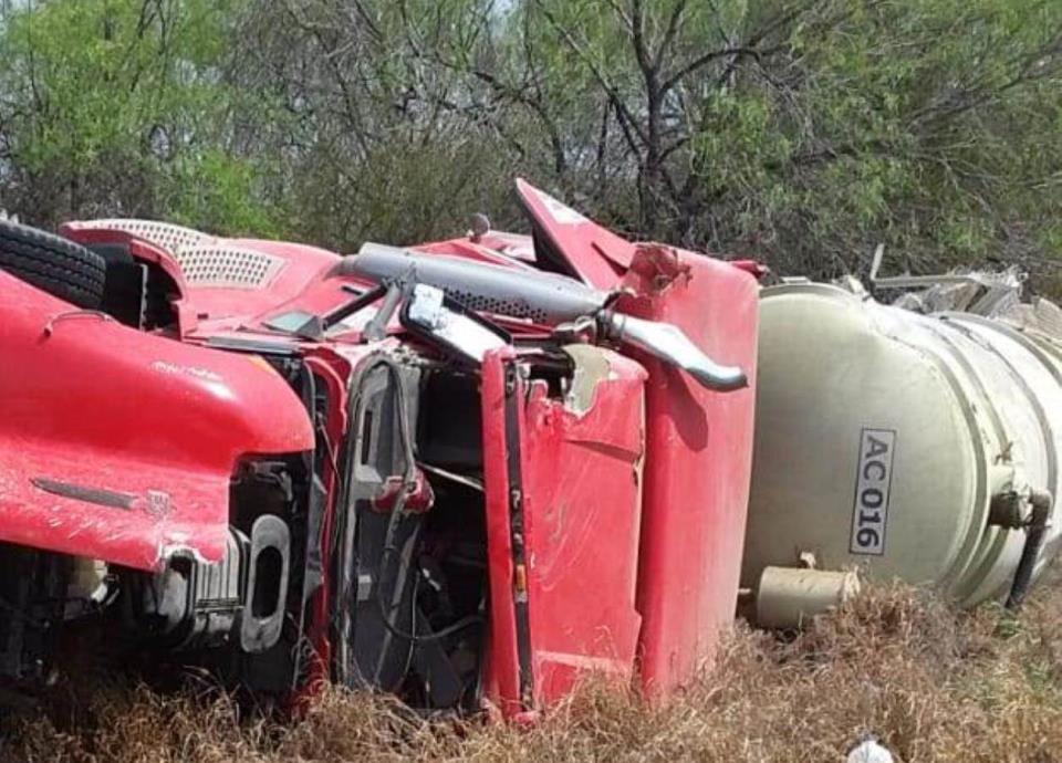 La volcadura de una pipa dejó esta mañana a una persona sin vida en la Carretera a Los Aldama, municipio de Doctor Coss, Nuevo León.