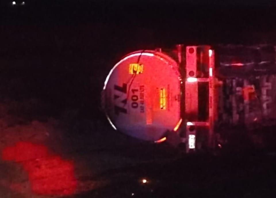 Las maniobras para retirar la pipa volcada se prolongaron por varias horas, sin que se reportaran incidentes.