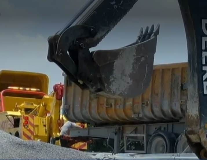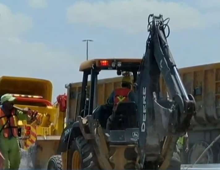 Fue necesario utilizar un trascabo, para poder agilizar el retiro del material, que terminó regado sobre el pavimento.