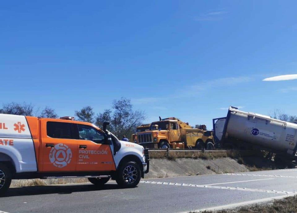 Los elementos de Protección Civil del Estado y municipales llegaron al lugar, donde confirmaron la volcadura de un tracto camión con 2 tanques que son utilizados para el transporte de jugos, encontrándose vacíos al momento del accidente.