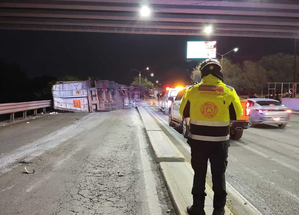 Los hechos se registraron en Morones Prieto y calle Barbadillo, y ante la volcadura quedaron bloqueados diversos carriles de la arteria.
