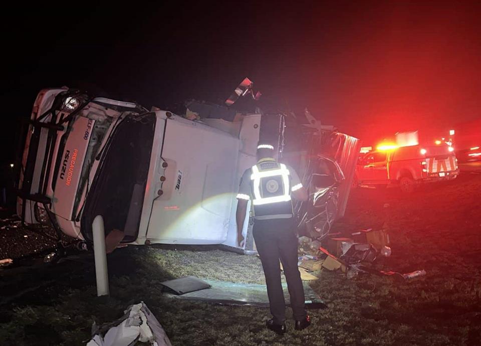 La unidad volcada es un camión Izuzu 600 placas 279 AU 3, conducido por Alfredo González Manzano, de 47 años de edad, lesionado.