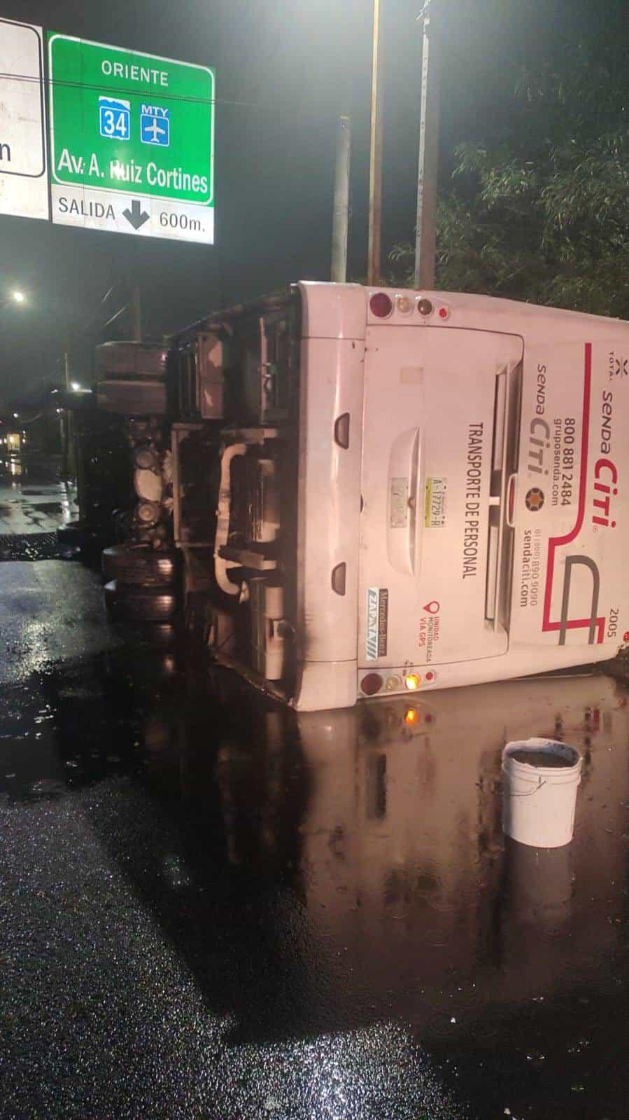 Una unidad de transporte de personal volcó luego de que su conductor aparentemente dudó por dónde continuar, ayer en la Avenida Abraham Lincoln a la altura de la Colonia Plutarco Elías Calles, municipio de Monterrey.