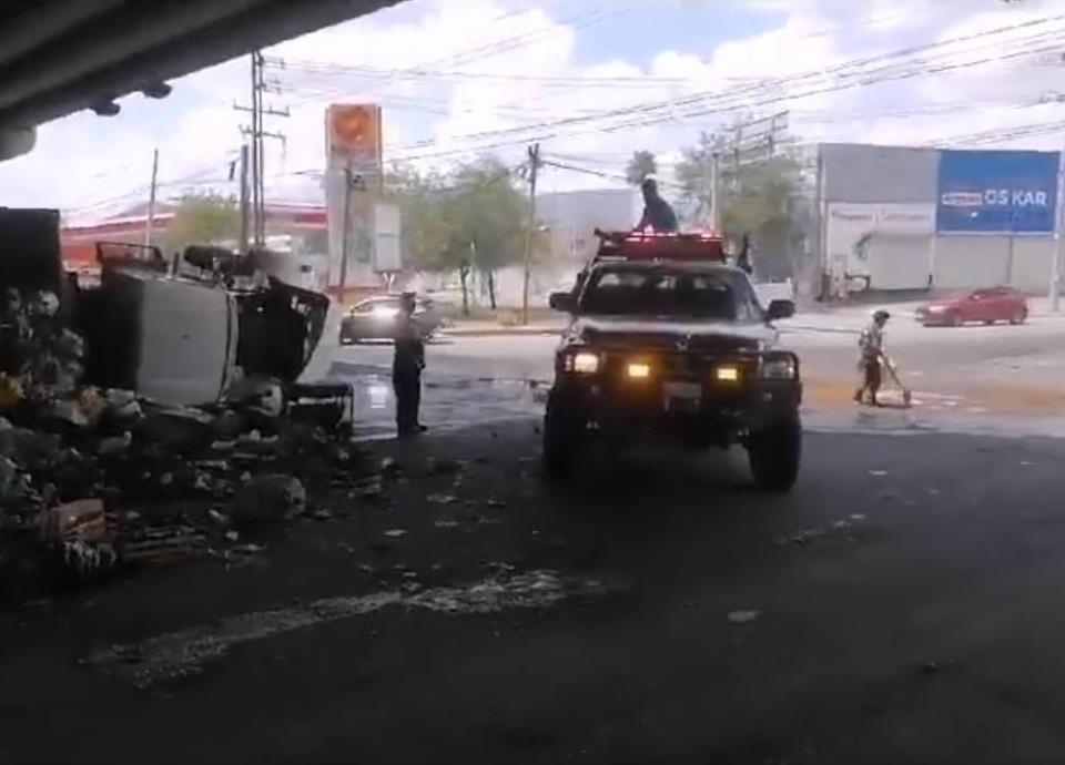 Al arribar al lugar elementos de Protección Civil Nuevo León, informaron que se trató de una volcadura de un tracto camión que trasportaba basura