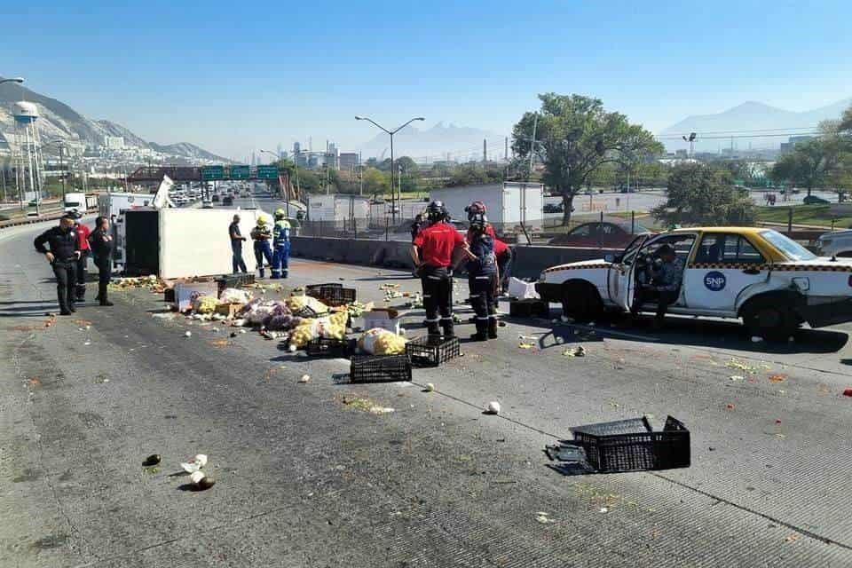 Tránsito municipal tuvo que cerrar la transitada arteria debido a que la mercancía quedó regada sobre varios carriles al dirección al poniente, lo que ocasionó un fuerte congestionamiento vial por más de dos horas.