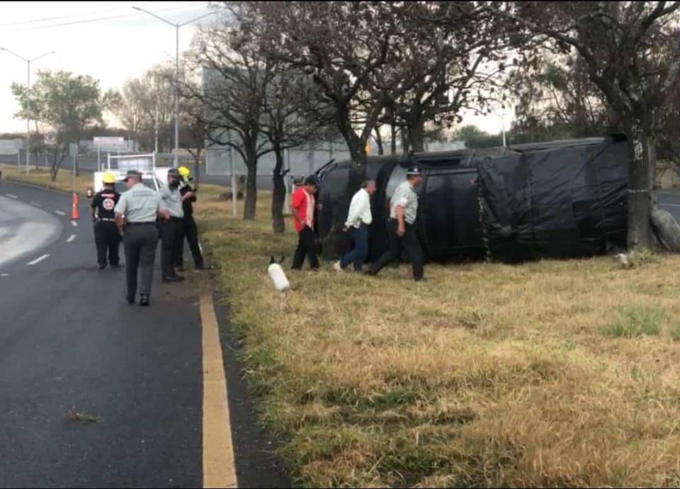 Mencionaron que, al perder el control del volante, la camioneta tipo pick up, terminó volcada en el camellón central.