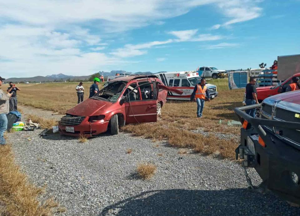 En el lugar resultaron cuatro personas lesionadas, dos mujeres y dos hombres, quienes fueron trasladados por ambulancia de la autopista y PC Ciénega de Flores al Hospital General de Sabinas Hidalgo.