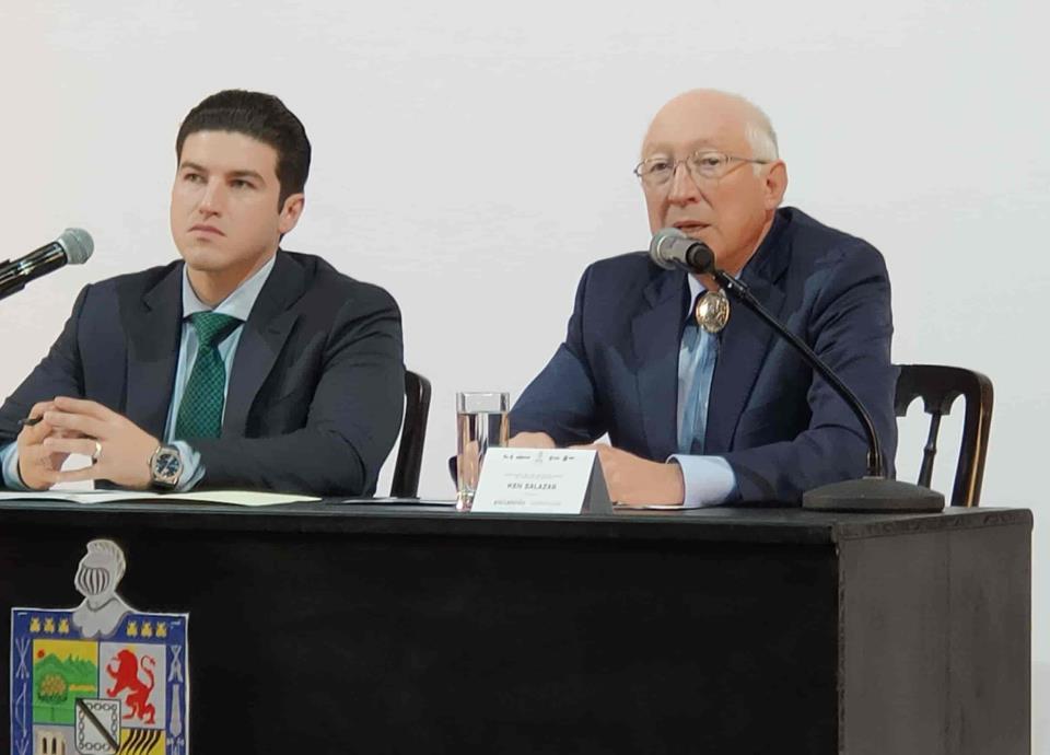 El gobernador Samuel García Sepúlveda y el diplomático norteamericano anunciaron parte de la agenda, entre las que destacan aspectos de Seguridad, Economía y Migración.