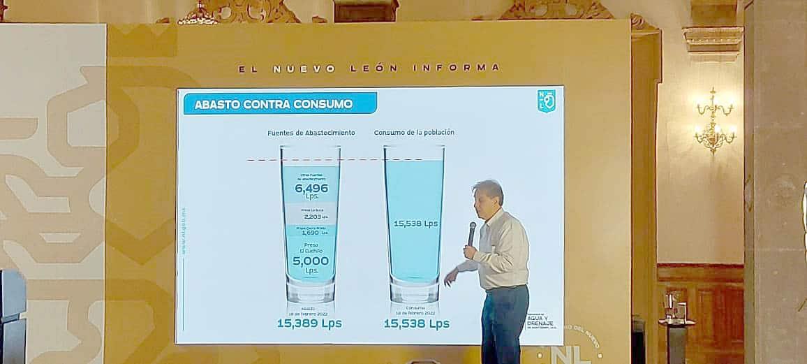Según un desglose, de los 516 litros por segundo recuperados, 295 litros por segundo provienen del acueducto El Cuchillo, 102 litros por segundo de los acueductos Mina I y II y 119 de fugas.