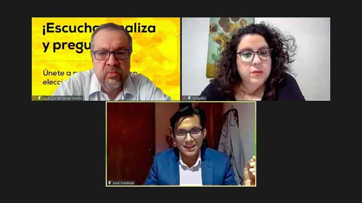José Fredman Mendoza Ibarra y José Luis Berlanga Santos, profesores de la Escuela de Derecho y Ciencias Sociales; y Ana Gabriela Sáenz Barrera, coordinadora del grupo Acción Cívica Interuniversitaria en la UDEM, participaron en la Mesa de análisis poselectoral: la nueva configuración política en México, que se desarrolló en un formato virtual, la tarde del pasado jueves 10 de junio.