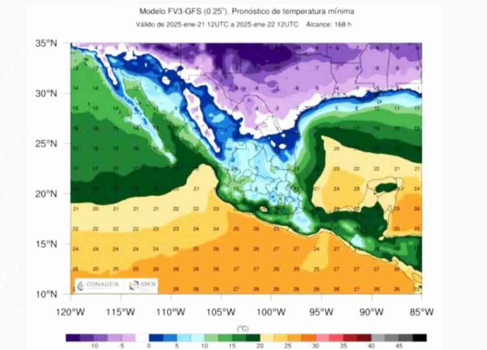 "Se prevé que durante los días lunes 20, martes 21 y miércoles 22 de enero, los valores de temperatura pudieran oscilan entre los -3.0 a los 0.0 grados centígrados, con probabilidad de lluvias aisladas", agrega.