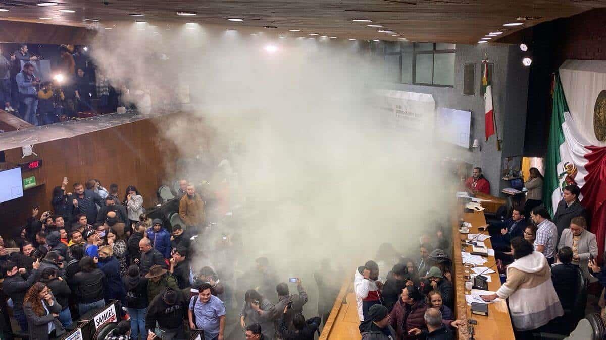 Ese día un grupo de manifestantes, muchos de ellos ligados a Movimiento Ciudadano irrumpieron la sesión tratando de evitar la designación de Luis Enrique Orozco como Gobernador Interino.