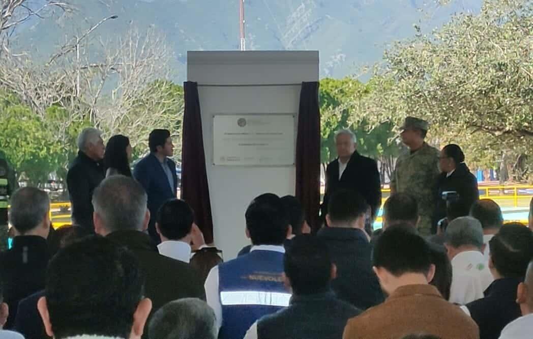 "Celebro que se esté inaugurando en definitiva esta obra para traer agua a la zona conurbada de Monterrey", expuso López Obrador tras develar la placa inaugural.