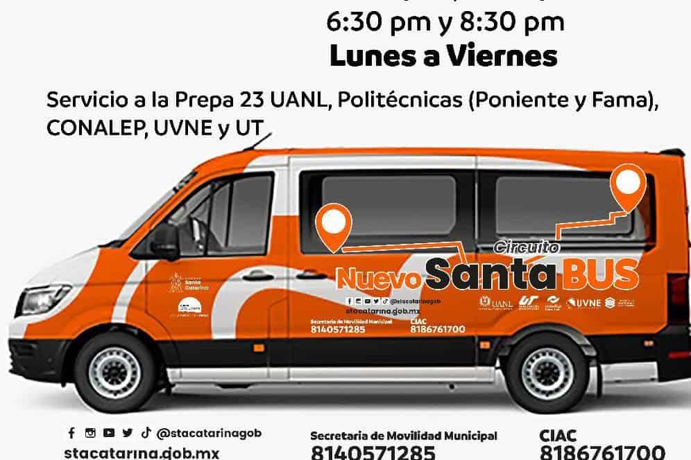 Así es que en pro de poder facilitar el traslado de estudiantes hacia sus Facultades y Preparatorias localizadas en Santa Catarina, el Alcalde Jesús Nava Rivera pondrá en marcha el programa emergente “Nuevo Santa Bus”.