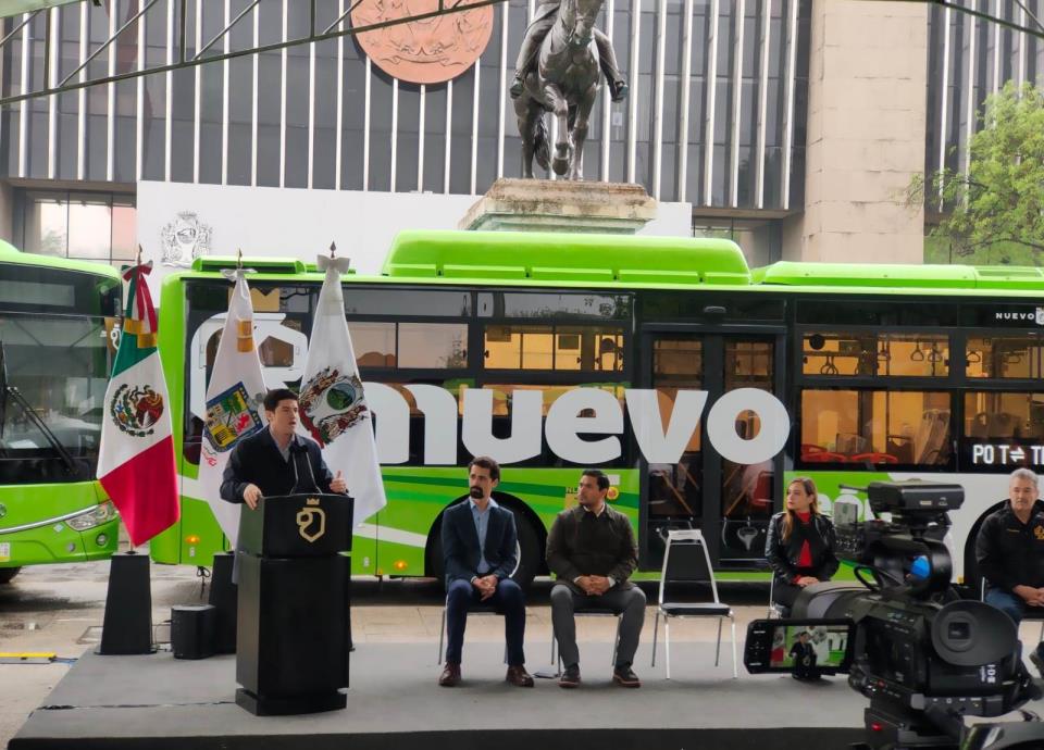 En la Explanada de la Plaza Zaragoza, el gobernador Samuel García Sepúlveda encabezó la presentación de las unidades que operará el Grupo Transregio bajo la Ruta 39.