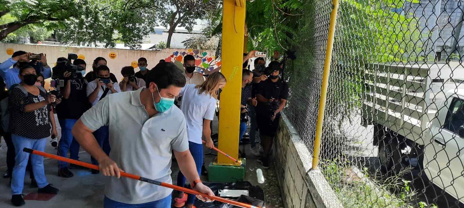 El Gobernador electo, Samuel García Sepúlveda, arrancó con el programa "apadrina una escuela", el cual tiene como objetivo ayudar a mejorar las condiciones de los planteles escolares tras el abandono que sufrieron a causa de la pandemia.
