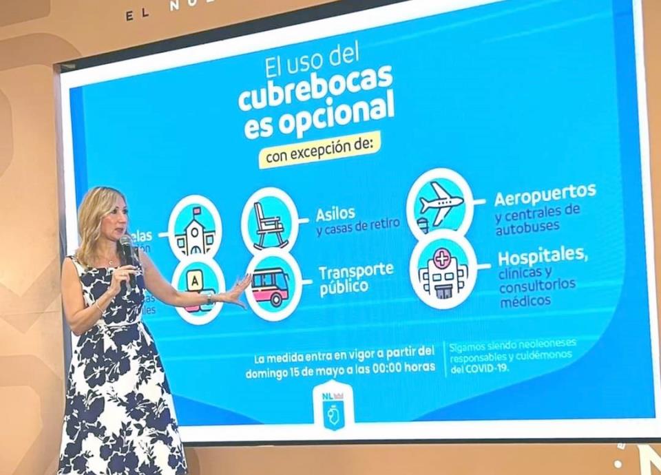 “Se elimina la obligatoriedad en estos lugares”, detalló la funcionaria en rueda de prensa Nuevo León Informa.