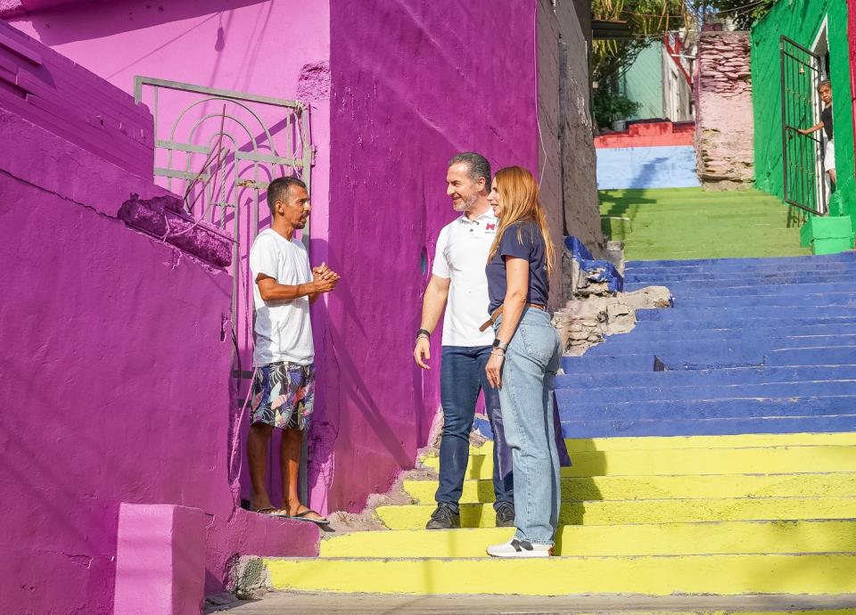 El Munícipe, junto a su esposa y presidenta del DIF, Gaby Oyervides, convivió con los vecinos y colaboró en la pintura de casas.