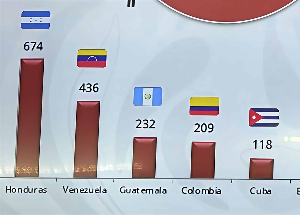 La primera posición la ocupa Honduras, con 674 migrantes.