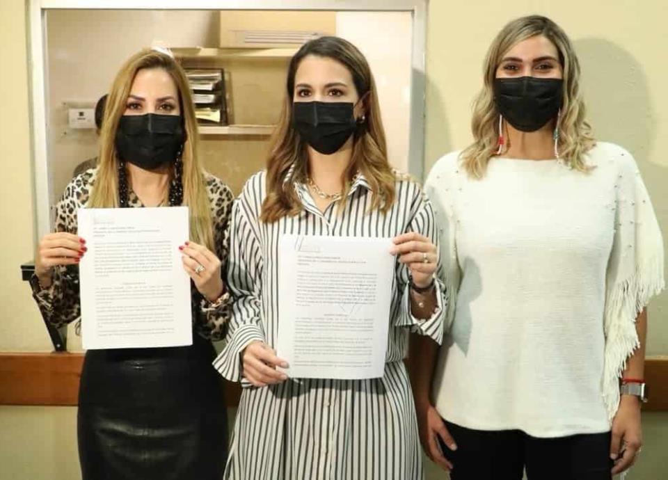 Las Diputadas Lorena de la Garza Venecia y Perla Villarreal, acompañadas de su homóloga Ana González, entregaron el documento en la Oficialía de Partes.