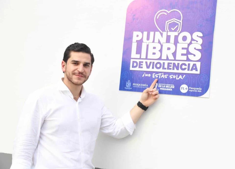 "Tenemos que realizar una labor de concientización para que las mujeres que sufran algún tipo de violencia puedan ser auxiliadas en cada uno de estos puntos y que las personas ubicadas en esos edificios públicos de Pesquería, comercios o empresas puedan prestarles ayuda y apoyo a todas las mujeres que atraviesen alguna situación de violencia", explicó el alcalde Patricio Lozano.