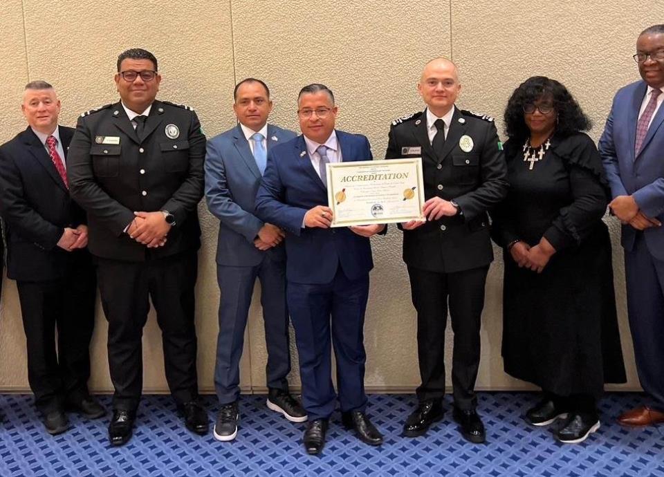 El Secretario de Seguridad, Gerardo Palacios Pámanes, acompañado del Comisario General de los Centros Penitenciarios de Nuevo León, recibieron la constancia en el Gaylord National Resort & Convention Center, en National Harbor, Maryland; Estados Unidos de América.
